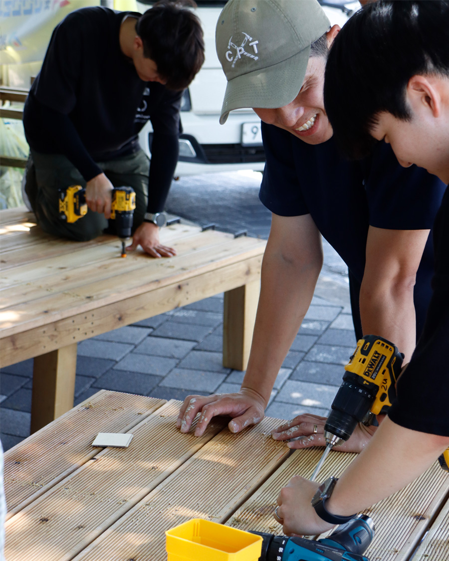✸ 여러 명이 함께 사용할 수 있는 벤치와 테이블 제작