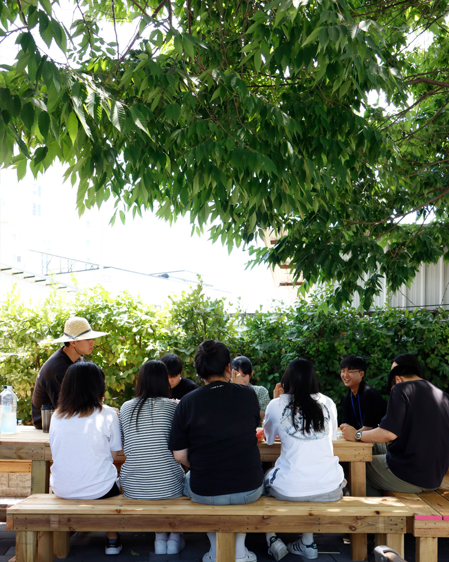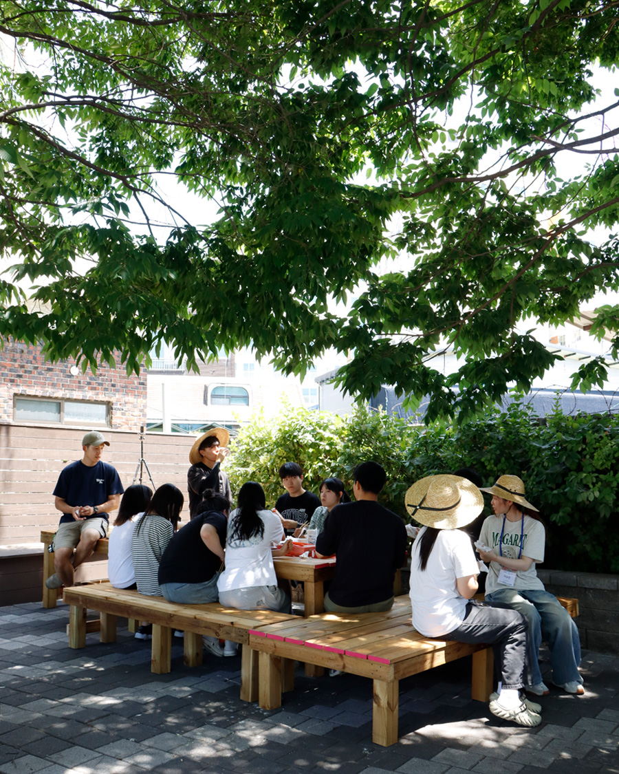 This project guided young people through a process of discovering local issues, exploring possible solutions, and taking direct action to address them. During their neighborhood exploration, members of a youth club at the Cheonan Youth Center noticed chairs placed by residents in various spots. After discussing and investigating why these chairs were needed, the youth discovered that users of a nearby free meal service lacked enough places to sit and eat. They also agreed that a comfortable resting space for the elderly was necessary. In response, the youth designed, built, and installed benches and tables that could be shared by multiple people in a small park next to the free meal center.