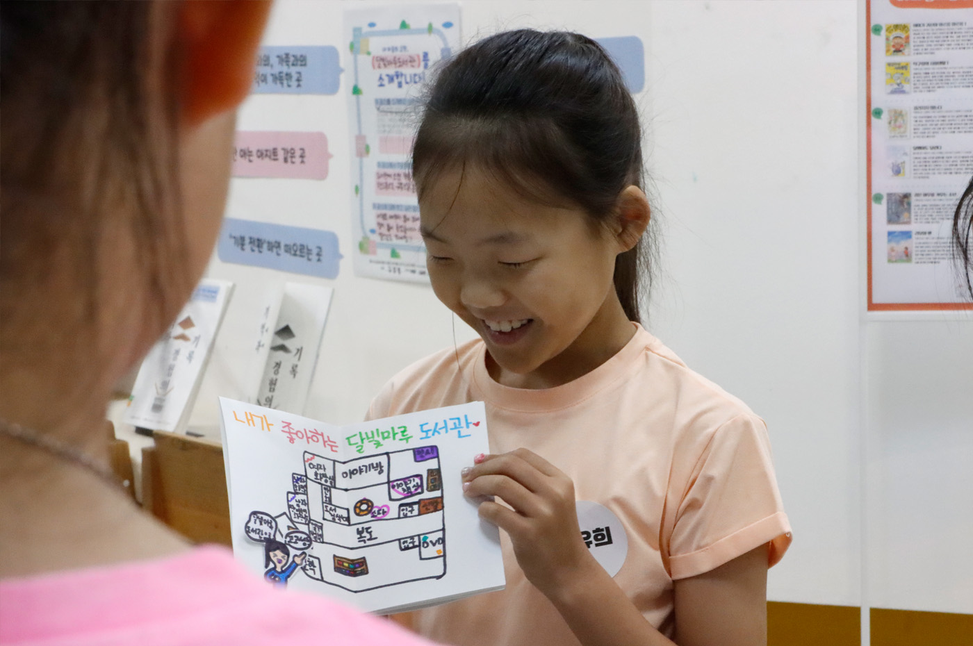 Through this project, children were able to experience the library not as a quiet, cautious place but as a free and exciting space where imagination and ideas come alive. They explored the library with fresh perspectives and senses, then created pop-up zines to introduce “their own” version of the library.